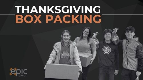 We are collecting non-perishable items to fill at least 120 Thanksgiving Boxes for families in our community! Please have all the non-perishable items to Epic by Sunday, November 16th. We also need volunteers to help set up Saturday, Nov 22nd, and help deliver the Thanksgiving Boxes to area schools on Monday, November 24th.