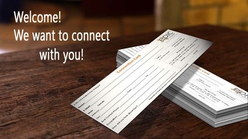 Please take a moment to fill out the Connection Cards located on your seat or at your table or online. This is our way to connect with you, and we really love hearing from you. Please feel free to leave any comments and/or prayer requests on the back of your Connection Card, as well as any events in which you would like to take part or need more information. You can hand your Connection Card to the person(s) collecting them by the gym doors on your way out after the gathering. We’re so glad you came today!